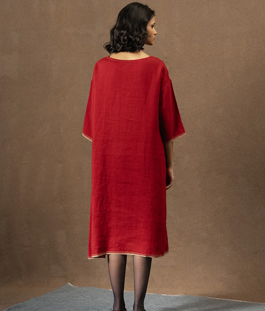 Handwoven Linen Red Dress